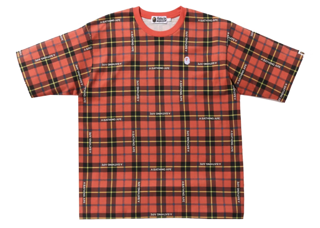 BAPE Red Logo Check Relaxed Fit One Point Tee